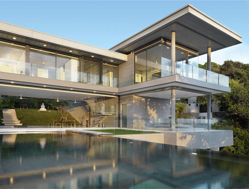 The 2,644 sqm design dutifully integrates notions of interior and exterior in the public and private realms by giving constant reference to the towering stone peaks and dramatic views of this wondrous site. The dynamic use of cantilevered features explore characteristics of spatial separation and identification inherent in the works of Frank Lloyd Wright, most notably Falling Water. The design also pays homage Mies Van deer Rohe’s Barcelona Pavilion as the terraces afford fine views that guide users through uninterrupted spans and transitory spaces where notions of indoor and outdoor are abandoned. The cantilevered swimming pool is the heart of the design.